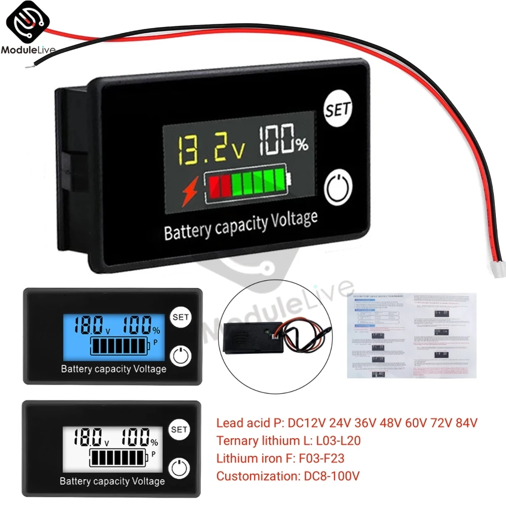 Voltímetro de batería de DC8V-100V 6133A, indicador de capacidad, medidor de potencia, LiFePO4, celda de plomo-ácido, 12V, 24V, 48V, para batería LCD