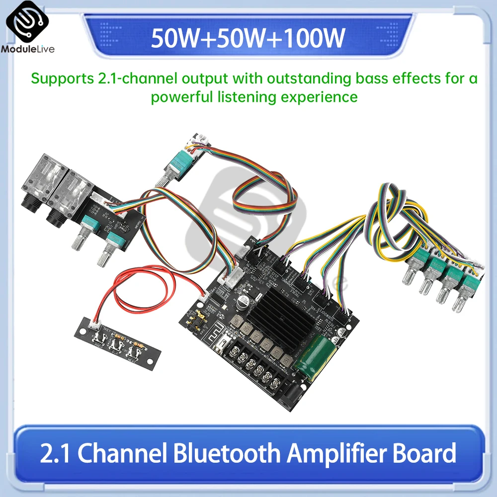 ZK-MT21S 2.1 Channel Bluetooth Amplifier Board 50W+50W+100W TPA3116D2 With Dual Mic Echo/Subwoofer Output DC12-24V