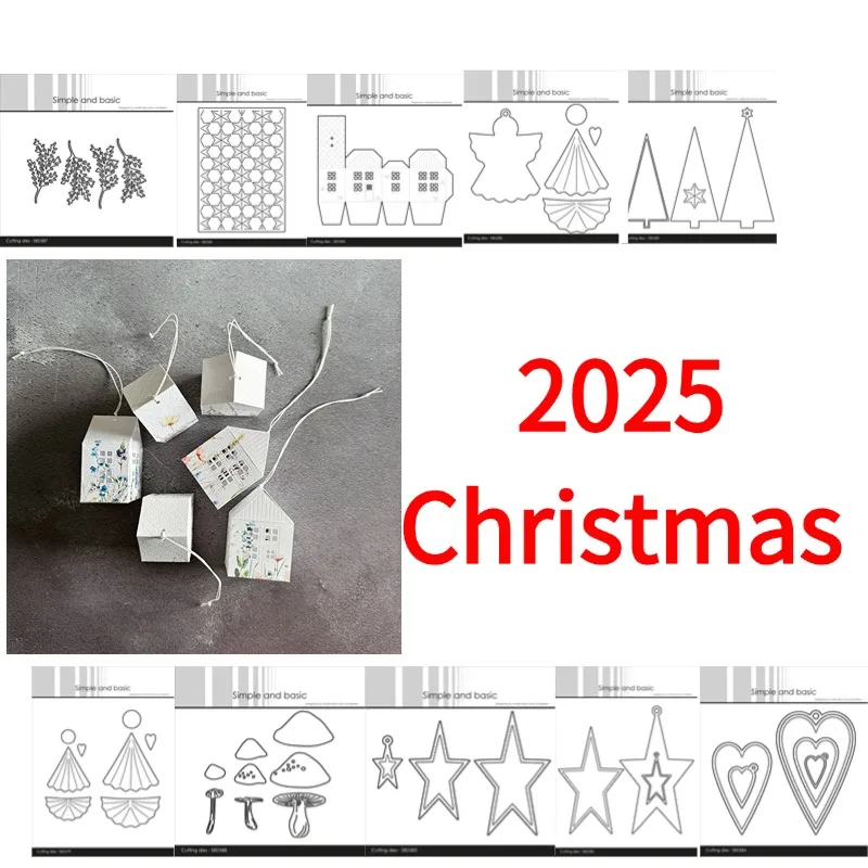 Casa árboles de Navidad ángeles techo estrellas etiqueta 3D corazón ramas troquel de corte de Metal sellos de silicona plantilla álbum de fotos papel DIY