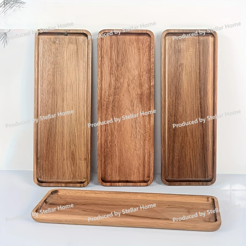 Bandeja de madera de acacia-1 Bandeja rectangular de madera maciza para pasteles, panes, snacks, té y café