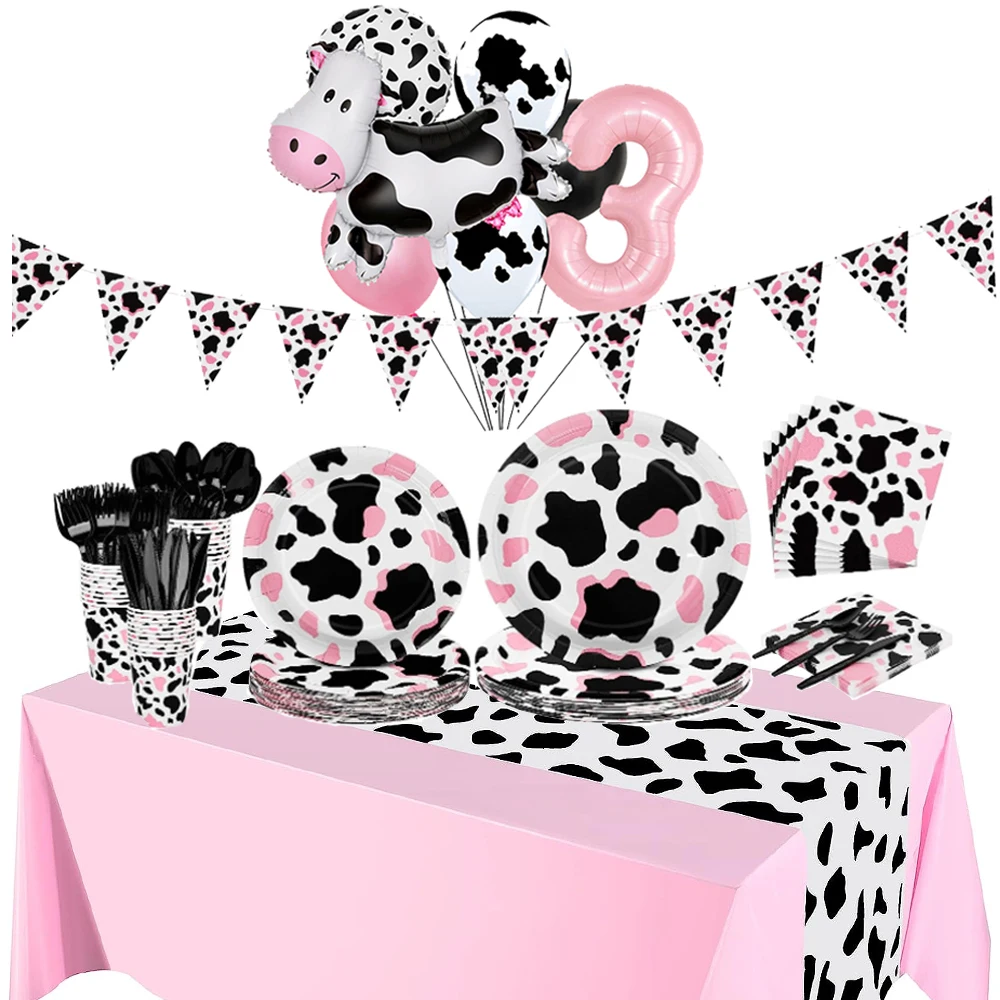 Suministros de fiesta de cumpleaños de vaca de granja, vajilla de fiesta de animales de granja, globo, Baby Shower, Barnyard, decoración para la parte de tercer cumpleaños