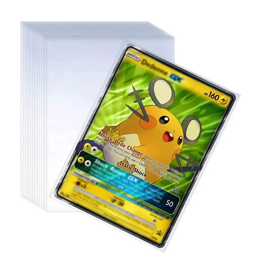 Fundas transparentes para tarjetas de juegos, Protector Compatible con tarjetas comerciales, estuche protector para Pokémon, juguete para regalo, 100 Uds.