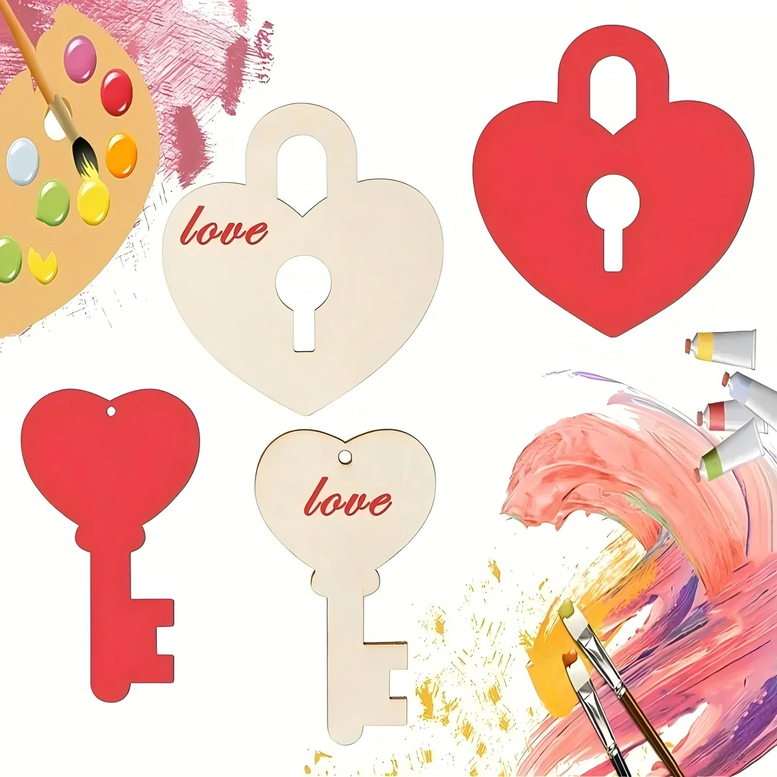 20 piezas forma de cerradura de corazón de madera, Kit para manualidades para colorear DIY, cerradura de corazón con llave, adorno colgante para decoración de boda, fiesta de San Valentín