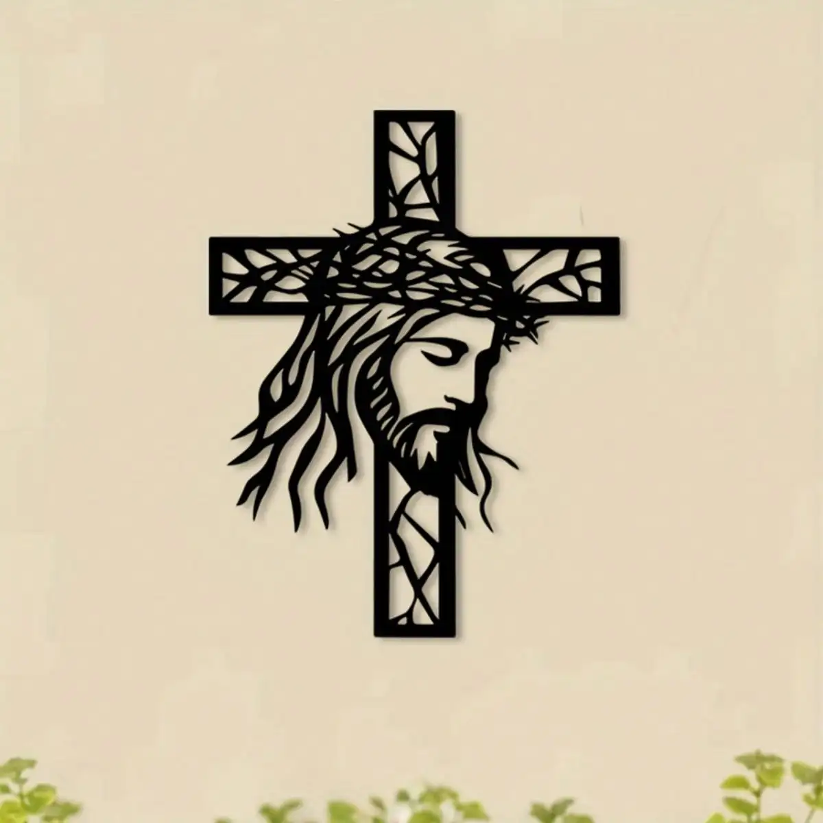 Arte de pared de hierro rústico: cruz de Jesús con corona de espinas, decoración religiosa perfecta para el hogar y el jardín