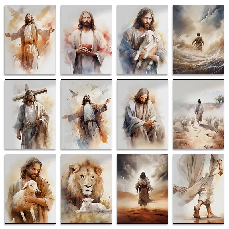 1 pieza de pintura en lienzo sin marco, póster de Jesús y la cruz, arte cristiano del Cordero de Dios, pintura en lienzo, arte de pared cristiano HD