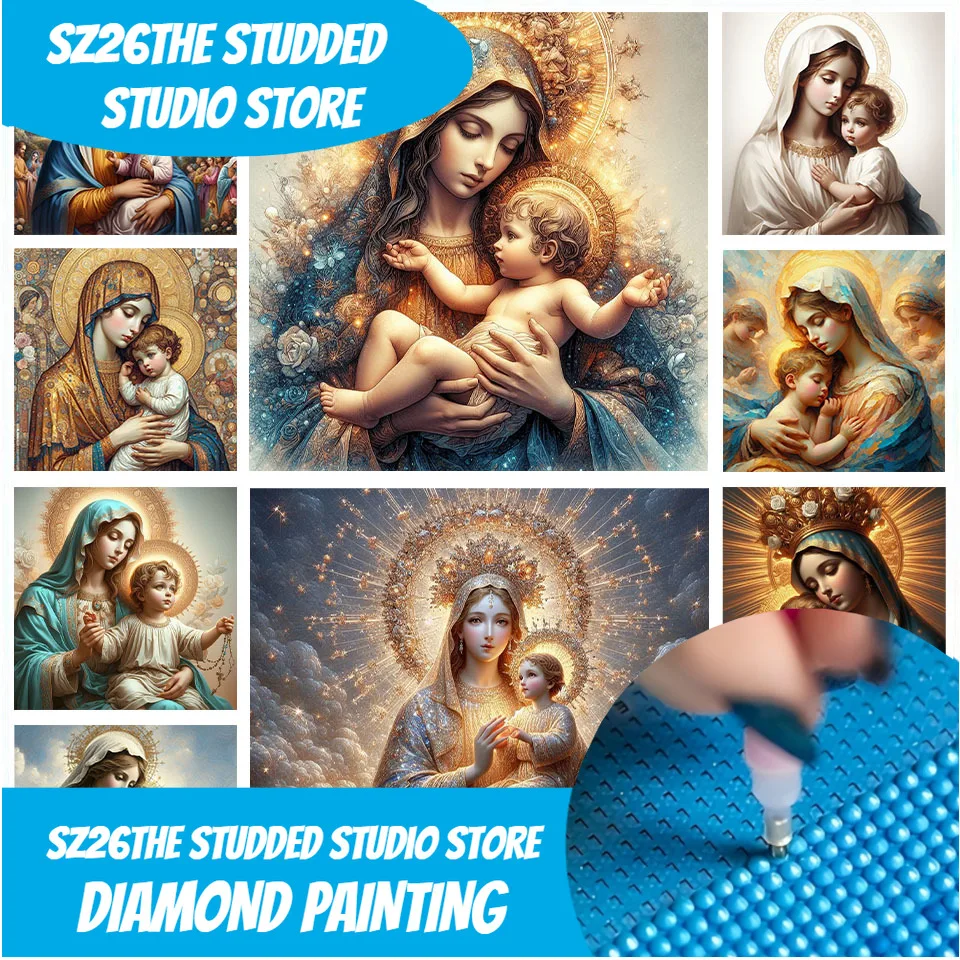 Sz26The-pintura de diamante tachonado, arte artesanal, diamantes de imitación de María y Jesús, punto de cruz, mosaico hecho a mano, regalo de decoración del hogar