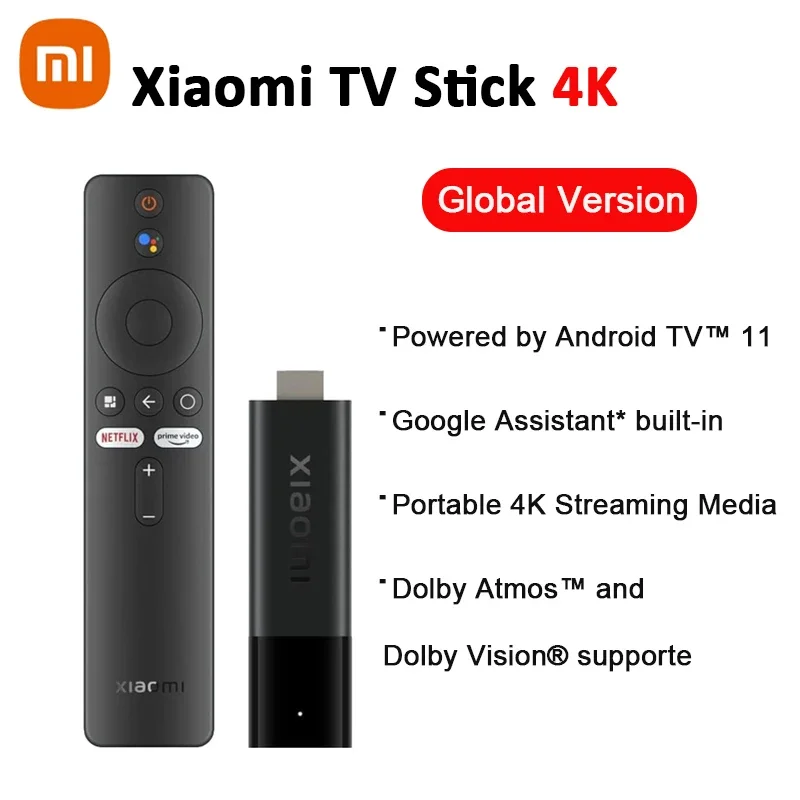 Xiaomi TV Stick 4K Streamer 1080P HD Asistente de Google Control remoto Android TV Media Player USB