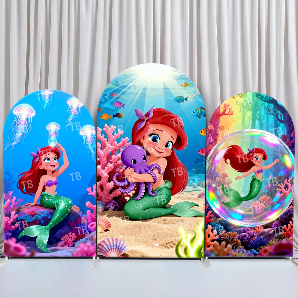 Platos de decoración de cumpleaños de La Sirenita, servilletas, tazas, pancarta colgante, telón de fondo, suministros de decoración para fiestas y eventos de cumpleaños