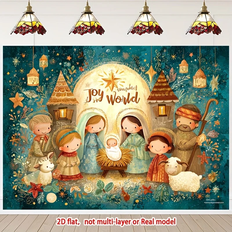2D plano, 1 pieza, pancarta de fondo de escenas de la Sagrada Familia, María plana 2D con ángel y cordero, fondo fotográfico religioso de Navidad