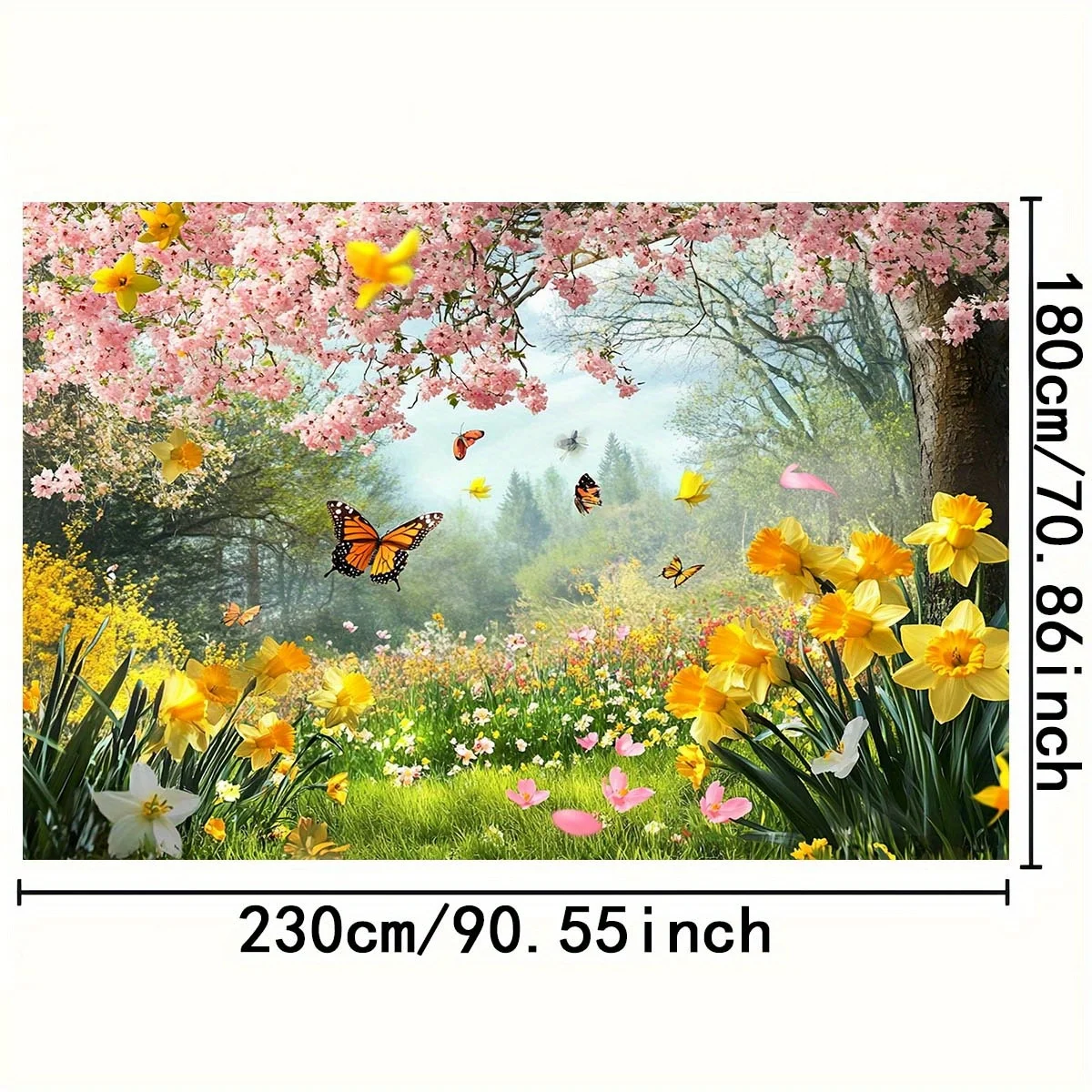 1 telón de fondo con dije de jardín de primavera: escena vibratoria de mariposa y flor para bodas, celebraciones de primavera y fiestas,