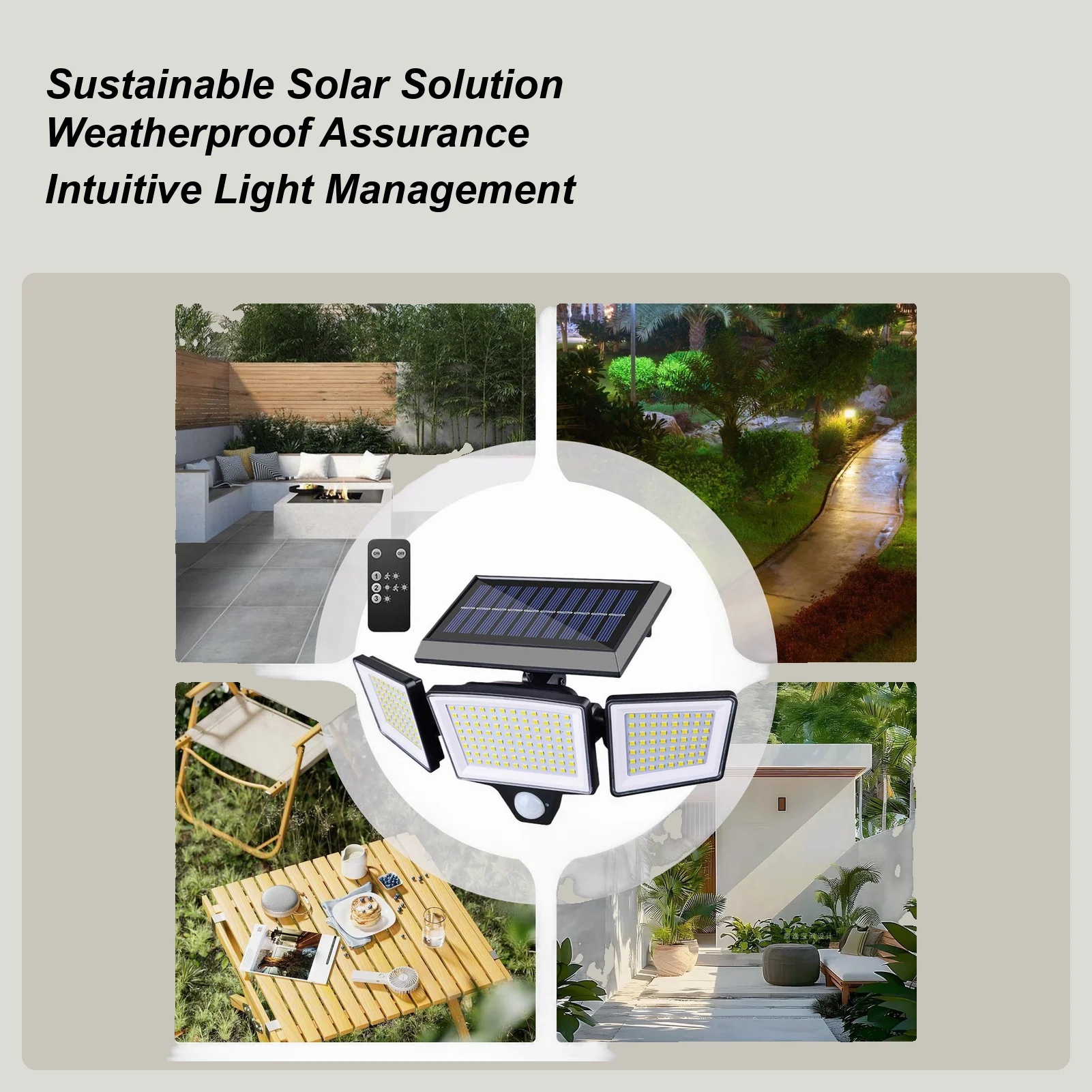 Luces solares de 2500 LM, foco con Sensor de movimiento impermeable, luces solares de 3 cabezales para exteriores, jardín, Patio, árbol