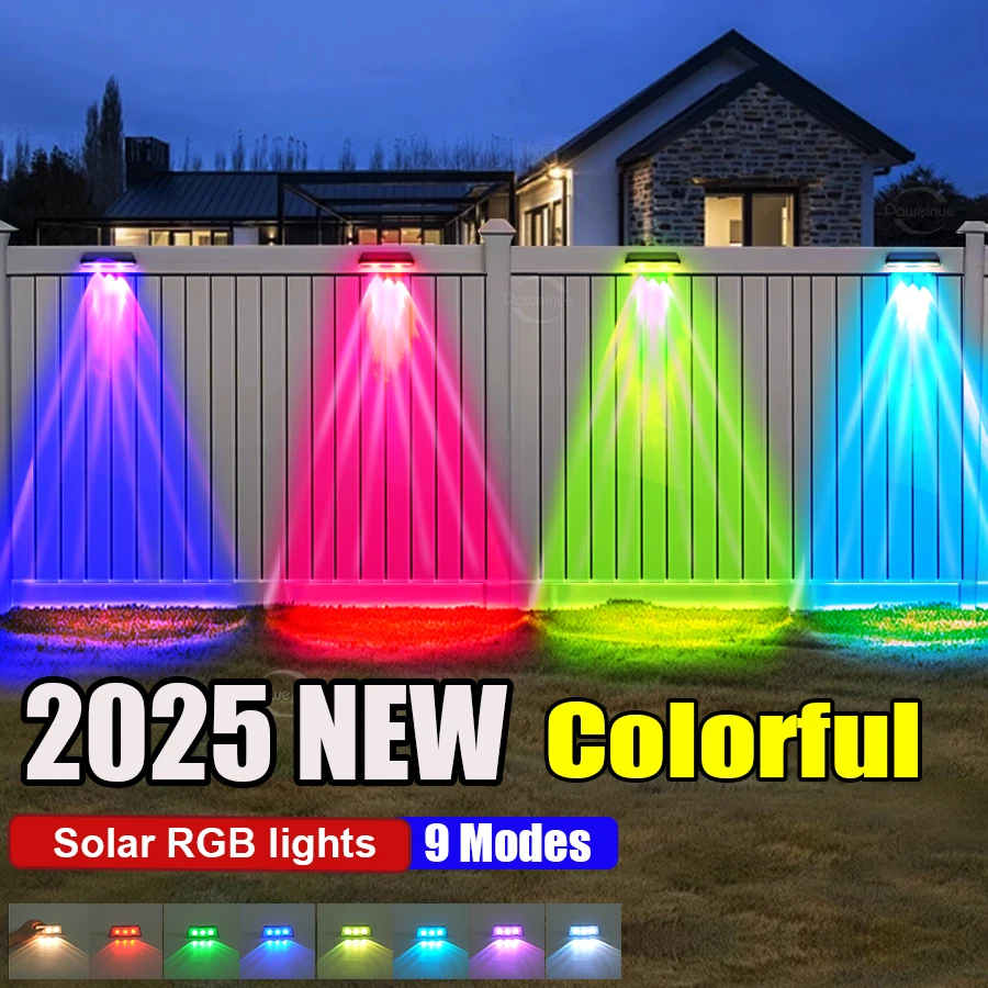 Luces solares superbrillantes RGB y luces LED solares blancas cálidas para escaleras, luces de pared para valla al aire libre, lámparas solares decorativas impermeables IP65