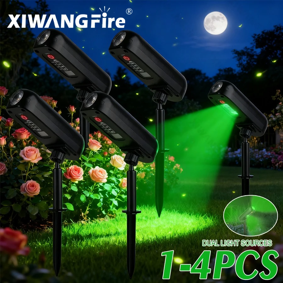 Paquete de 1-4 focos solares y lámpara de pared IP55 LED verde impermeable para jardín, patio, camino, ambiente decorativo, iluminación ascendente de árboles