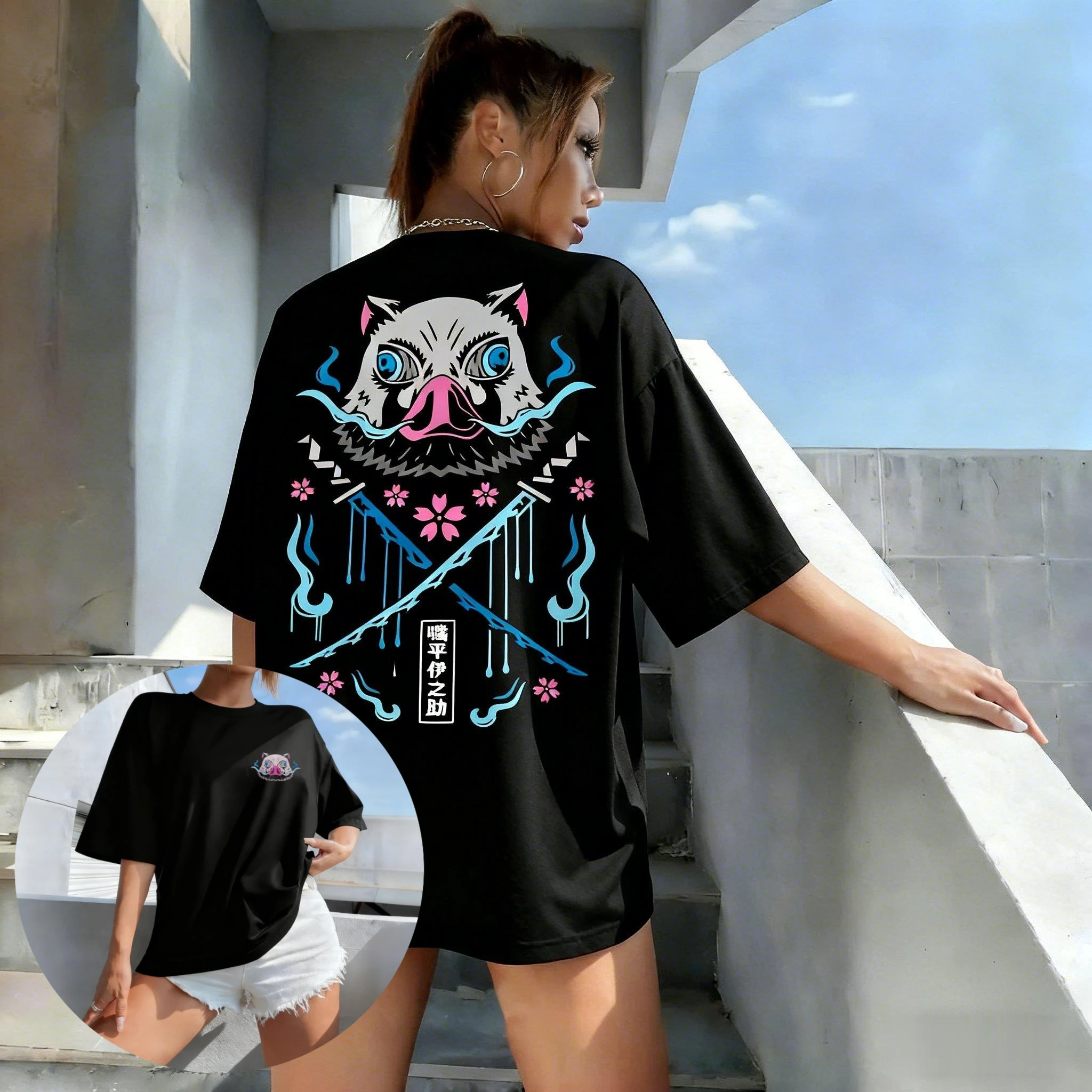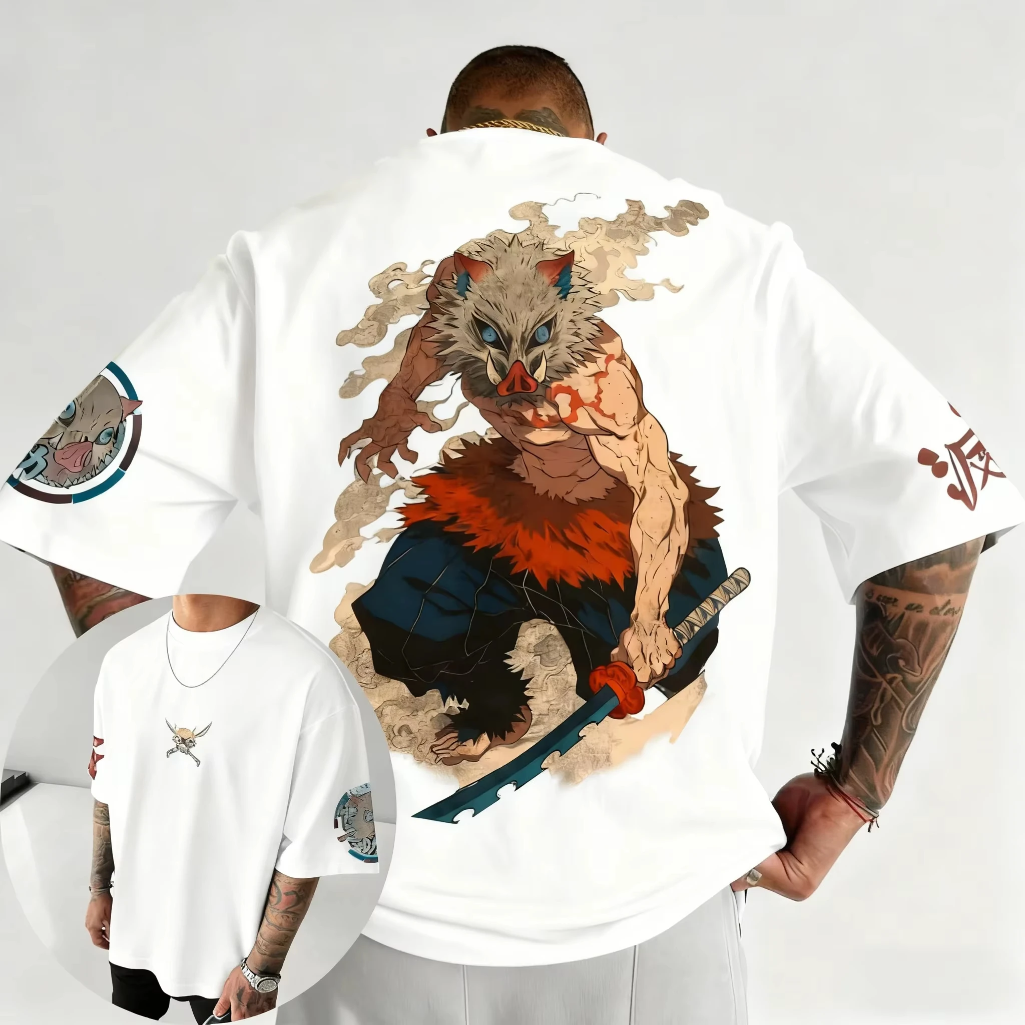 Camiseta con estampado de Demon Slayer Anime Inosuke para hombre, camiseta para padres e hijos, novedad de verano, moda versátil, estilo Harajuku, informal grande, Y2K