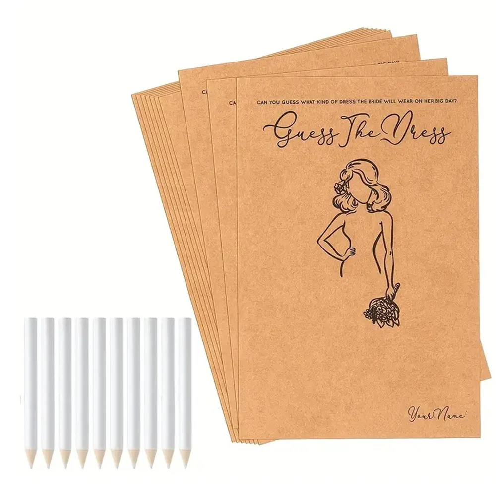Runto-Juego de 10 tarjetas divertidas para juegos de adivina el vestido con lápiz, accesorios de juego para fiesta de compromiso y boda para invitados de despedida de soltera