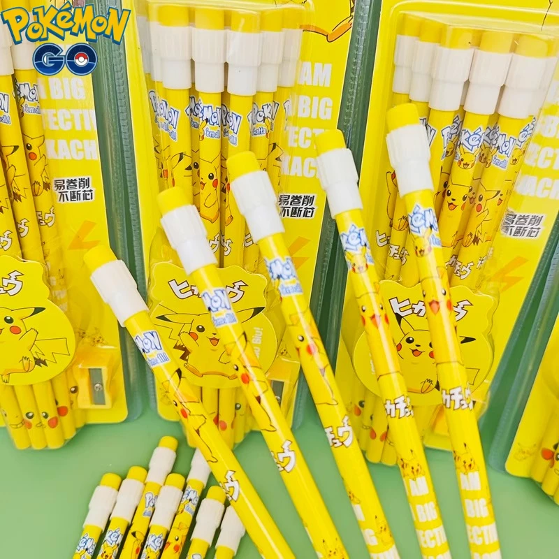12 Uds. De lápices bonitos de Anime Pikachu, sacapuntas, periféricos de dibujos animados de Pokémon, suministros escolares, papelería Kawaii, juguetes Divertidos, regalo