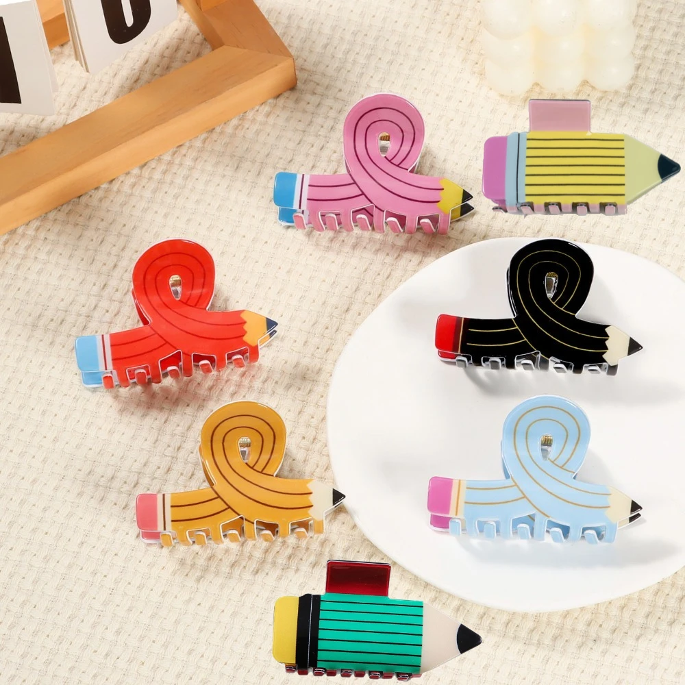 Pluma colorida creativa, garra para el pelo de acetato, lápiz divertido, pinza para el pelo de cangrejo, Clip de tiburón para mujer, niña, estudiante, horquilla, accesorios para el cabello