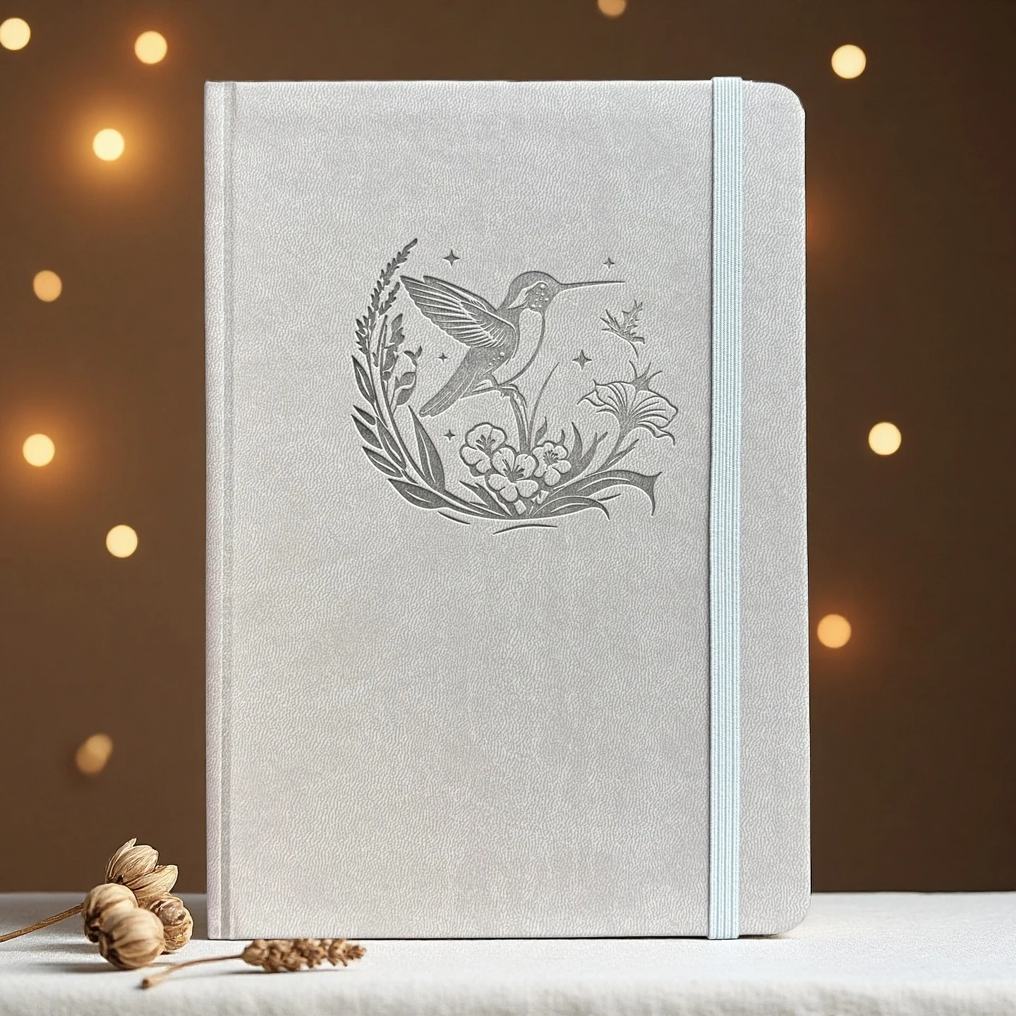 Elegante cuaderno con puntos de colibrí A5, diario de papel de 160 g/m2 con cuadrícula de 5x5 mm, 160 páginas numeradas, marcapáginas de cinta, idea de regalo