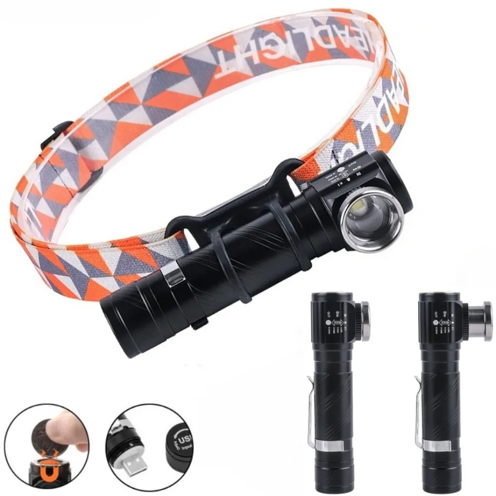 LED Súper Brillante 90 ° Linterna Frontal Recargable con Zoom, de Aleación de Aluminio, con Clip para Bolígrafo, Magnética, para Camping