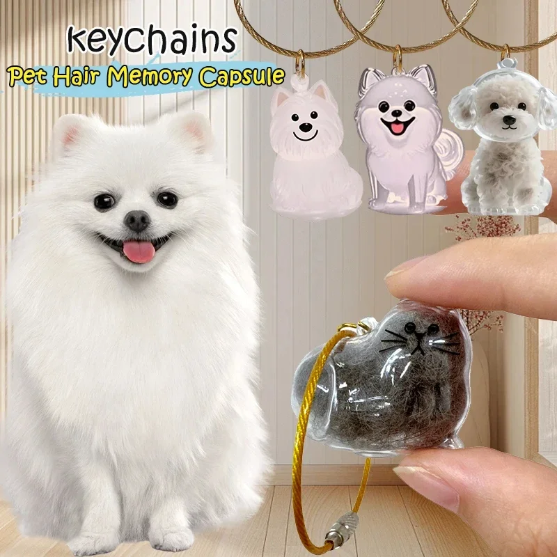 2 Piezas Llavero con Caja de Recuerdo para Pelo de Mascota (Perro/Gato), para Guardar Recuerdos Preciados, Uso Diario, Regalos Conmemorativos para Perros