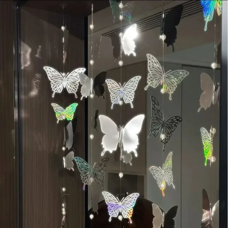 Cortina de puerta con lazo de mariposas, cortina divisoria para dormitorio, sala de estar, cortina de flores con cuentas de mariposa, decoración para fiesta de cumpleaños de niña feliz