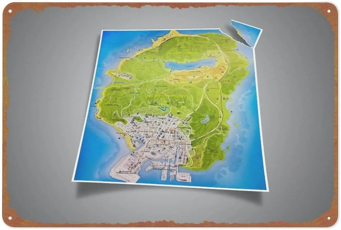 Póster artístico de mapa oficial GTA 5, cartel de Metal de estaño Vintage de 12.0 x 8.0 in, cafetería, oficina, restaurante, hogar, jardín, Bar, tienda, Club, regalo