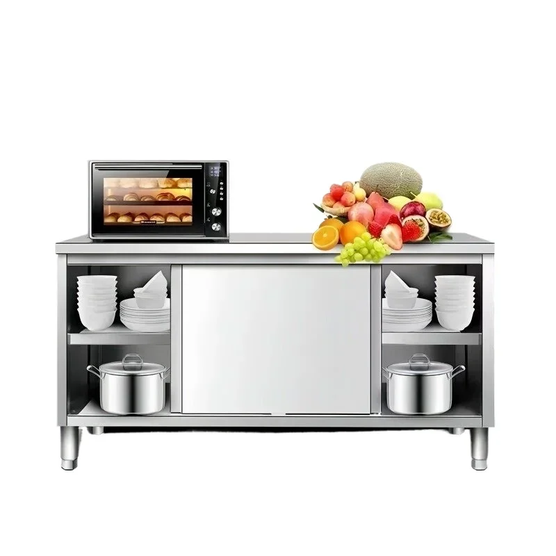 Banco de trabajo de acero inoxidable 304 engrosado, mueble de cocina, mesa de Catering comercial, consola para el hogar, puerta corredera