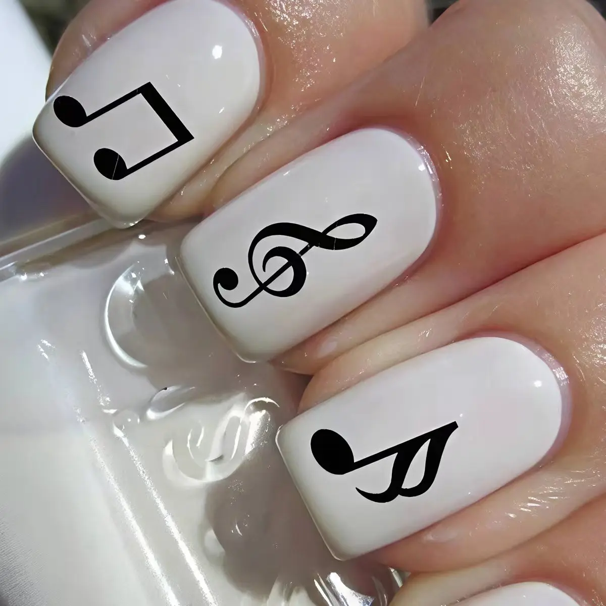 24 Uds INS Simple ataúd blanco prensa en uñas negro nota Musical impresión uñas postizas usable desmontable puntas de uñas postizas europeas