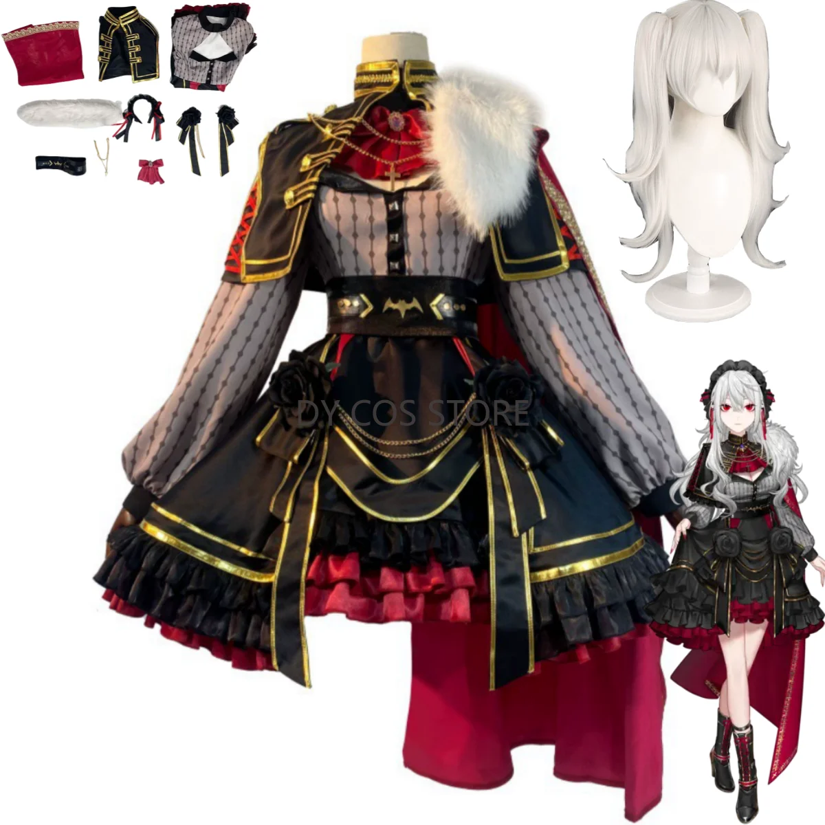 Disfraz de Youtuber Virtual Kuzuha Sanya, disfraz de Vtuber Nijisanji, vestido gótico femenino de Lolita, capa, peluca, conjunto de baile enmascarado Kawaii para mujer