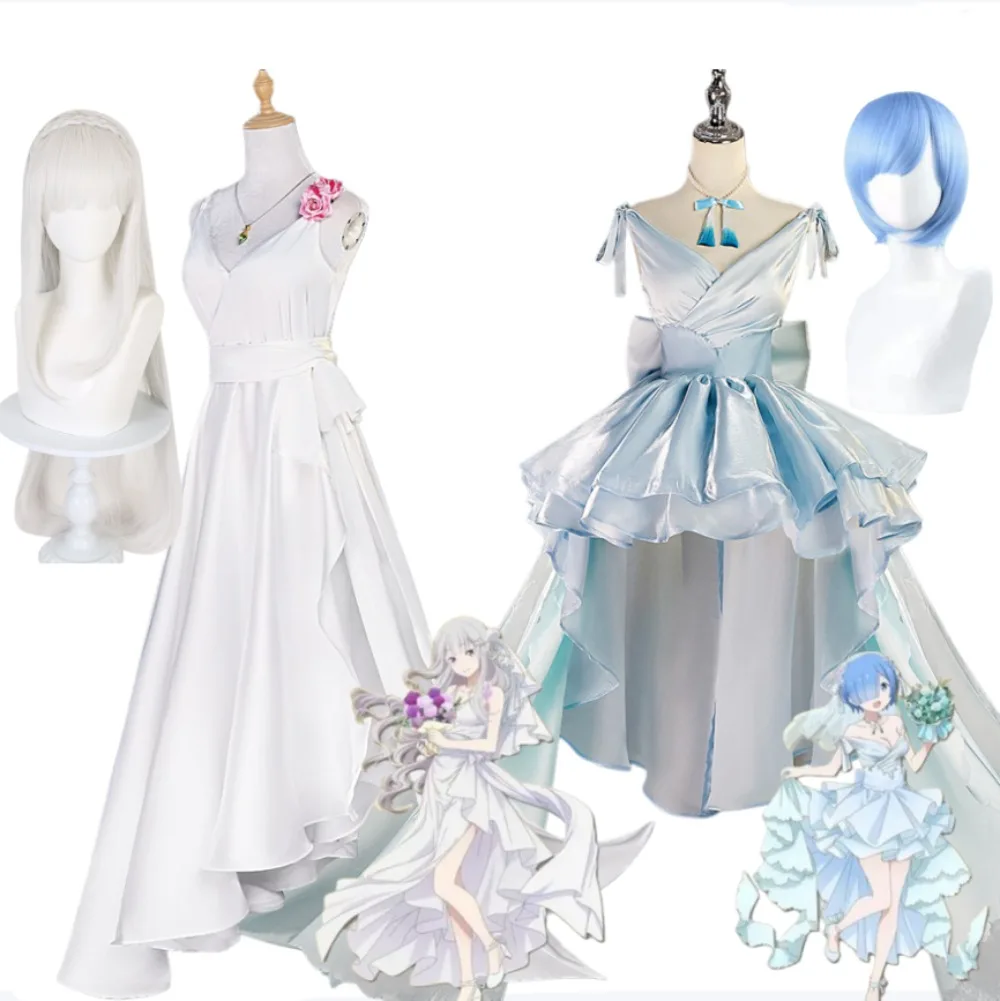 Re:ZERO Starting Life in Another World Rem Emilia disfraz de Cosplay vestido blanco accesorio peluca conjunto disfraz de escenario actuación