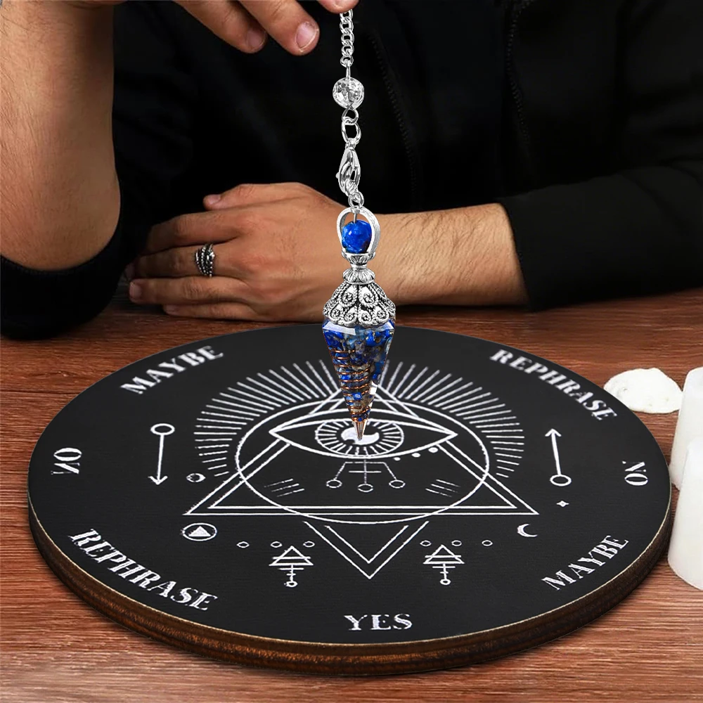 2 unids/set juego de tablero de péndulo, tablero de adivinación de radiestesia de madera tablero de mensaje metafísico con péndulo de cristal para brujería