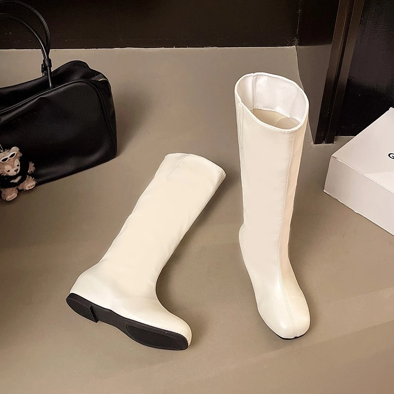 Botas altas retro ajustadas sin rodilla para mujer Botas occidentales Reafirmante interior recto simple