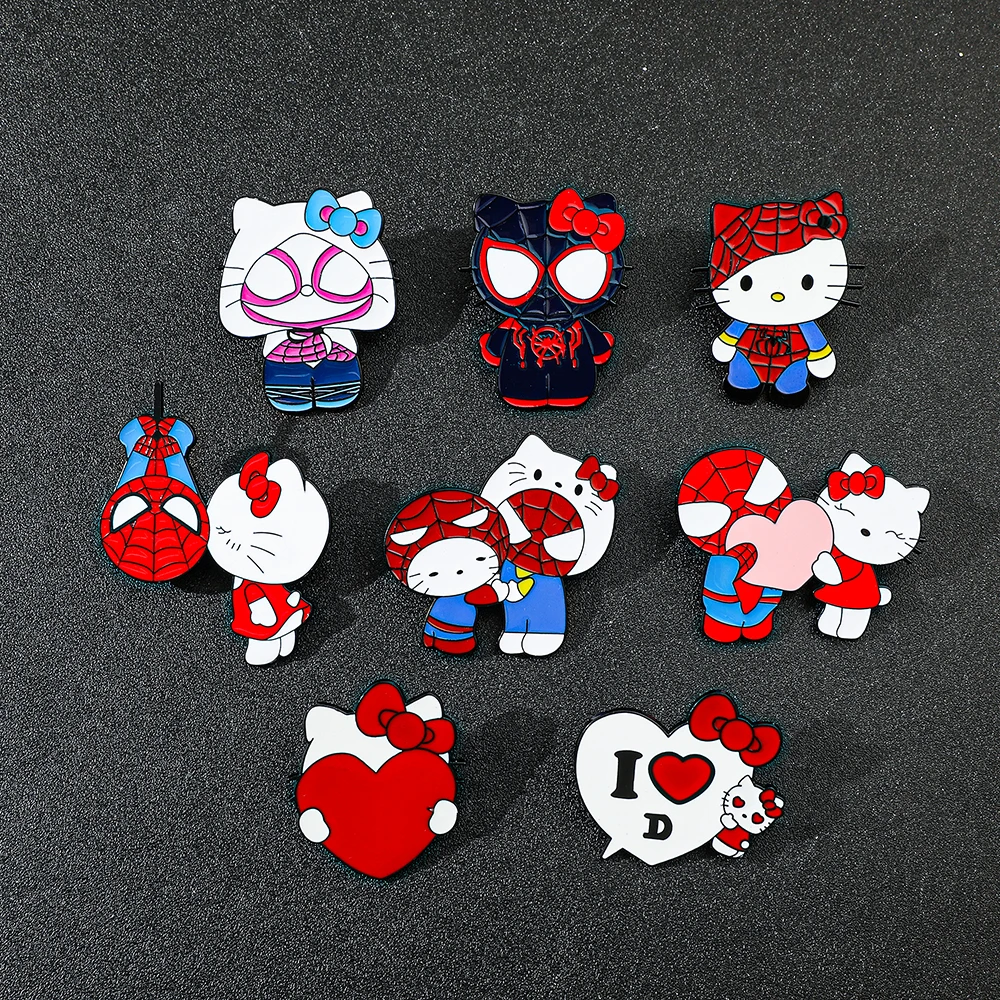 Lindo gato esmalte Pin-Hello Kitty Cosplay Spider-Man Sanrio insignia coleccionable joyería para mochila accesorio broche de solapa