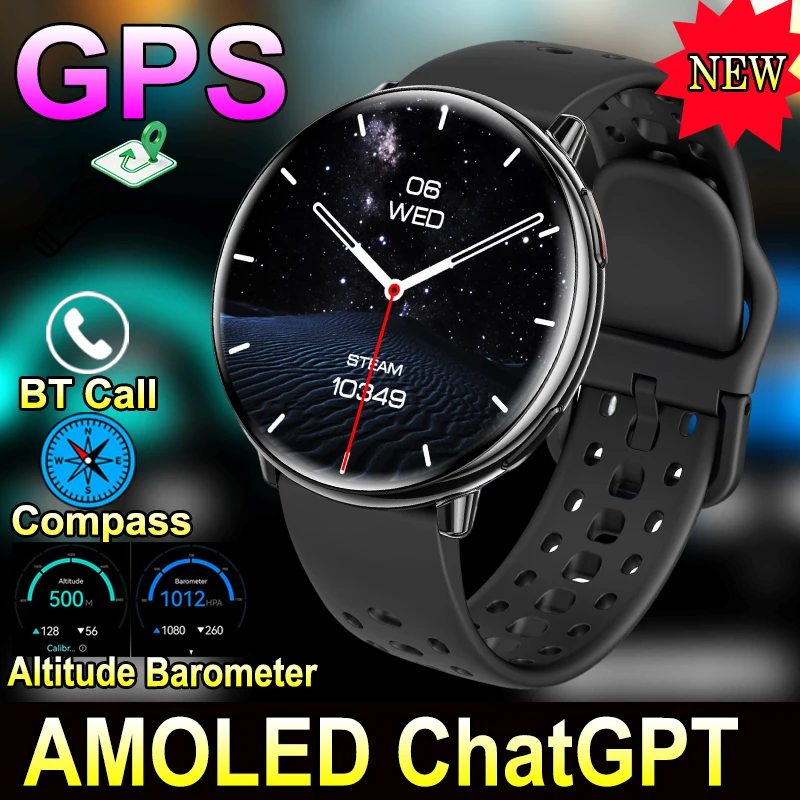 Hombres Mujeres GPS brújula reloj inteligente deportes al aire libre seguimiento barómetro altitud 1,43 ''AMOLED ritmo cardíaco BT llamada ChatGPT Smartwatch