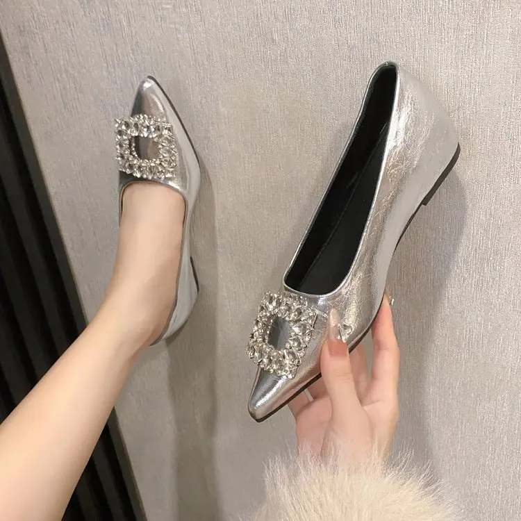Zapatos sin cordones para mujer, zapatos Oxford con punta estrecha y boca poco profunda, zuecos con plataforma, calzado femenino sin cordones de cristal para verano N