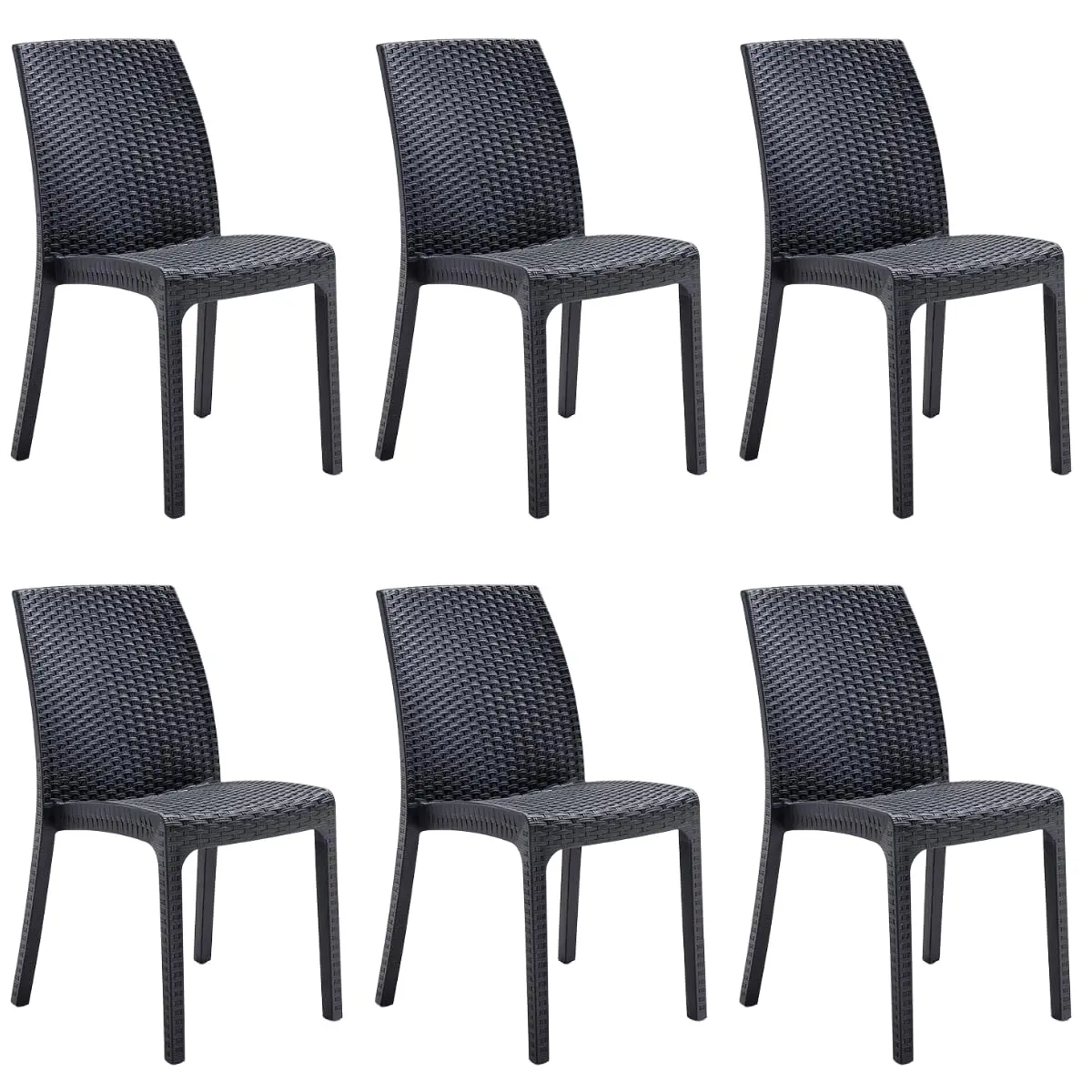 Tomaino - Silla de jardín apilable de plástico - Juego de 6 sillas de mesa apilables de ratán para exteriores - Silla de polipropileno para el hogar, jardín, balcón, bar (negro)