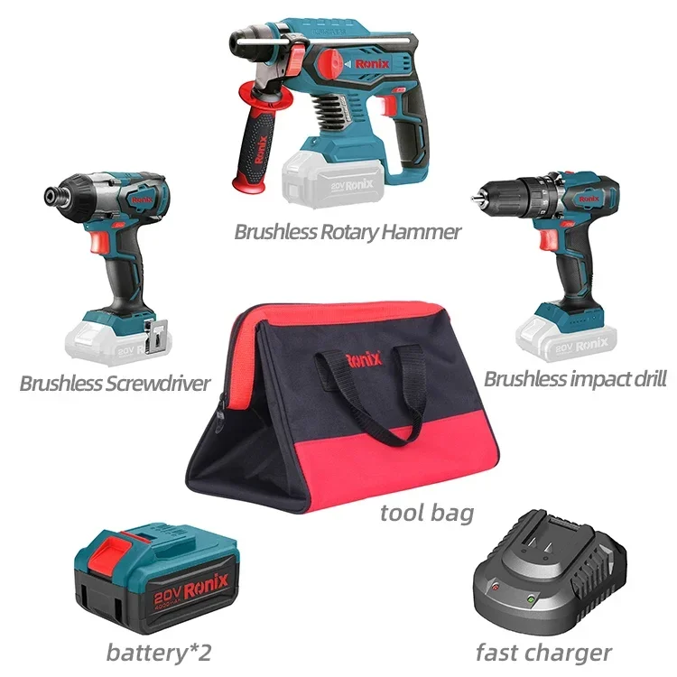 Para Ronix 89K04 20V en Stock herramientas inalámbricas taladro de impacto sin escobillas destornillador sin escobillas juego de taladros de martillo rotativo
