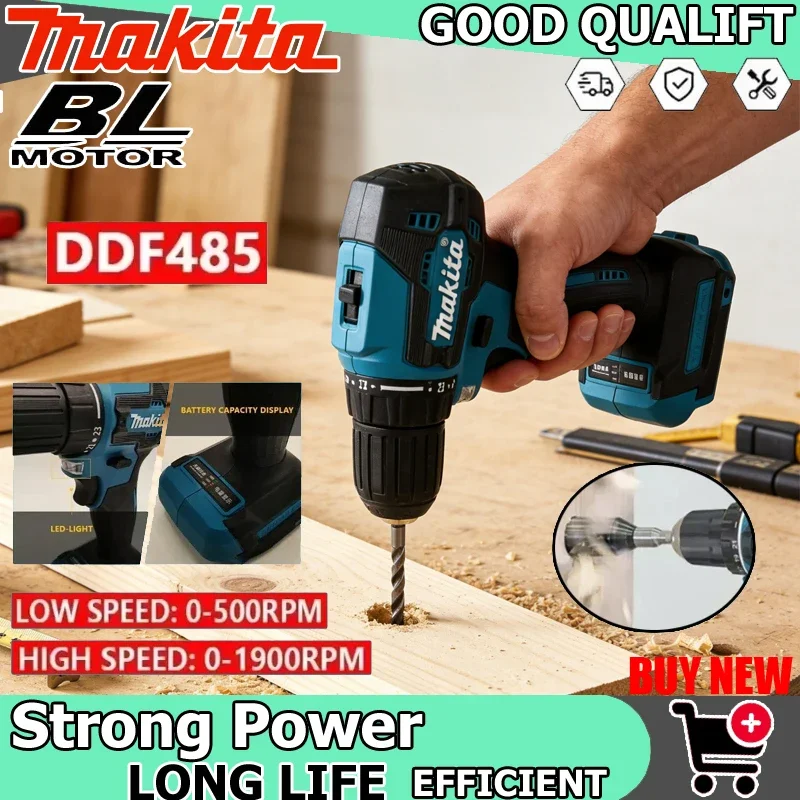 Taladro Percutor Inalámbrico Compacto Makita DDF485 de 18V, Herramienta Eléctrica Recargable sin Escobillas con Velocidad Variable para Perforar y Martillar