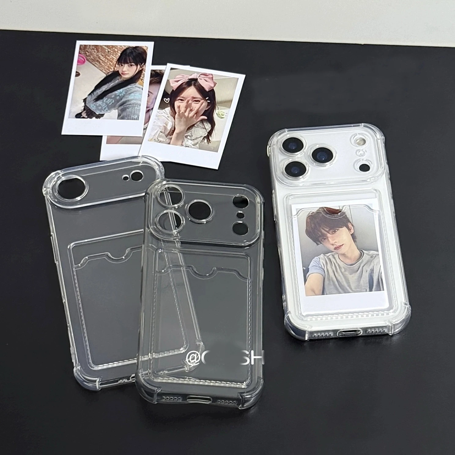 Funda de teléfono transparente con funda para tarjetas para iPhone 17 AIR 16 15 14 13 12 11 Pro MAX 16E MINI XR XS 7 8 Plus Y2K cubierta a prueba de golpes