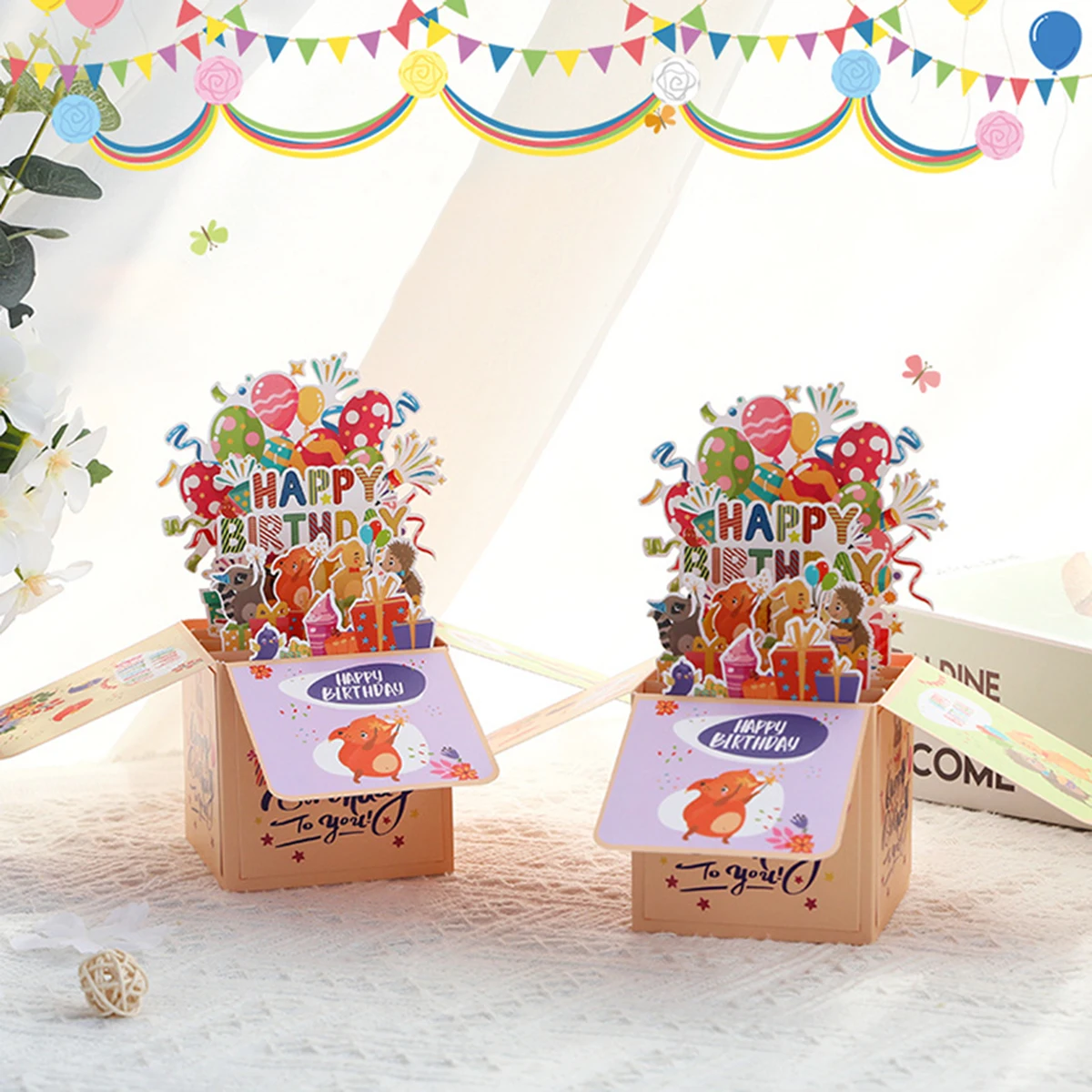 Tarjeta de cumpleaños emergente 3D, tema animal, caja de regalo de escultura de papel hecha a mano, tarjeta de mensaje para expresar gratitud y bendiciones