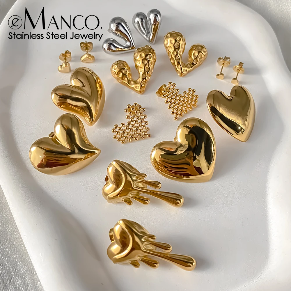 eManco-Conjunto de pendientes de corazón dorado, aretes de acero inoxidable, estilo minimalista Hip Hop, joyería para mujer