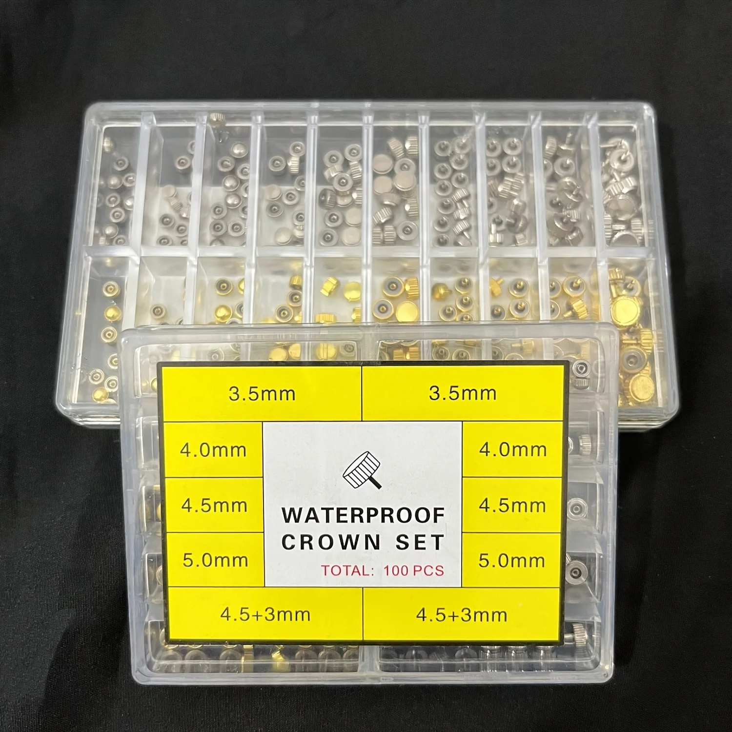 ¡Gran venta! Juego de coronas de reloj impermeables de 100 piezas/300 piezas, varios tamaños para reparación de relojes