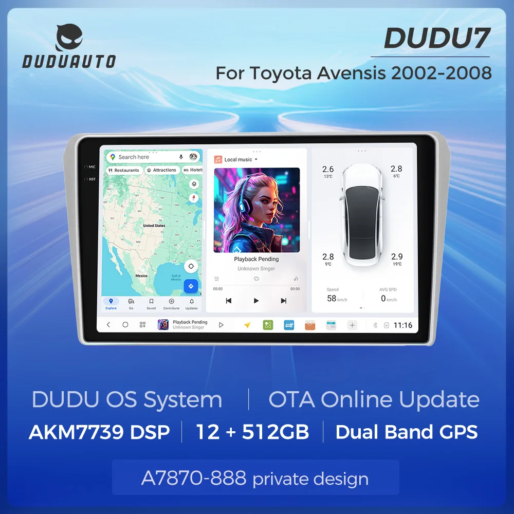 Envío gratuito desde tiendas de la UE, radio para coche DUDUAUTO, unidad principal estéreo 2 Din para Toyota Avensis T25 2 II 2002-2008 DUDU7 A7870-888, reproductor multimedia para coche, pantalla táctil HD de 9 pulgadas, Carplay inalámbrico, Android Auto, 4G WIFI, RDS, GPS, 8 núcleos, 12+512G, compatible con TPMS y SWC.