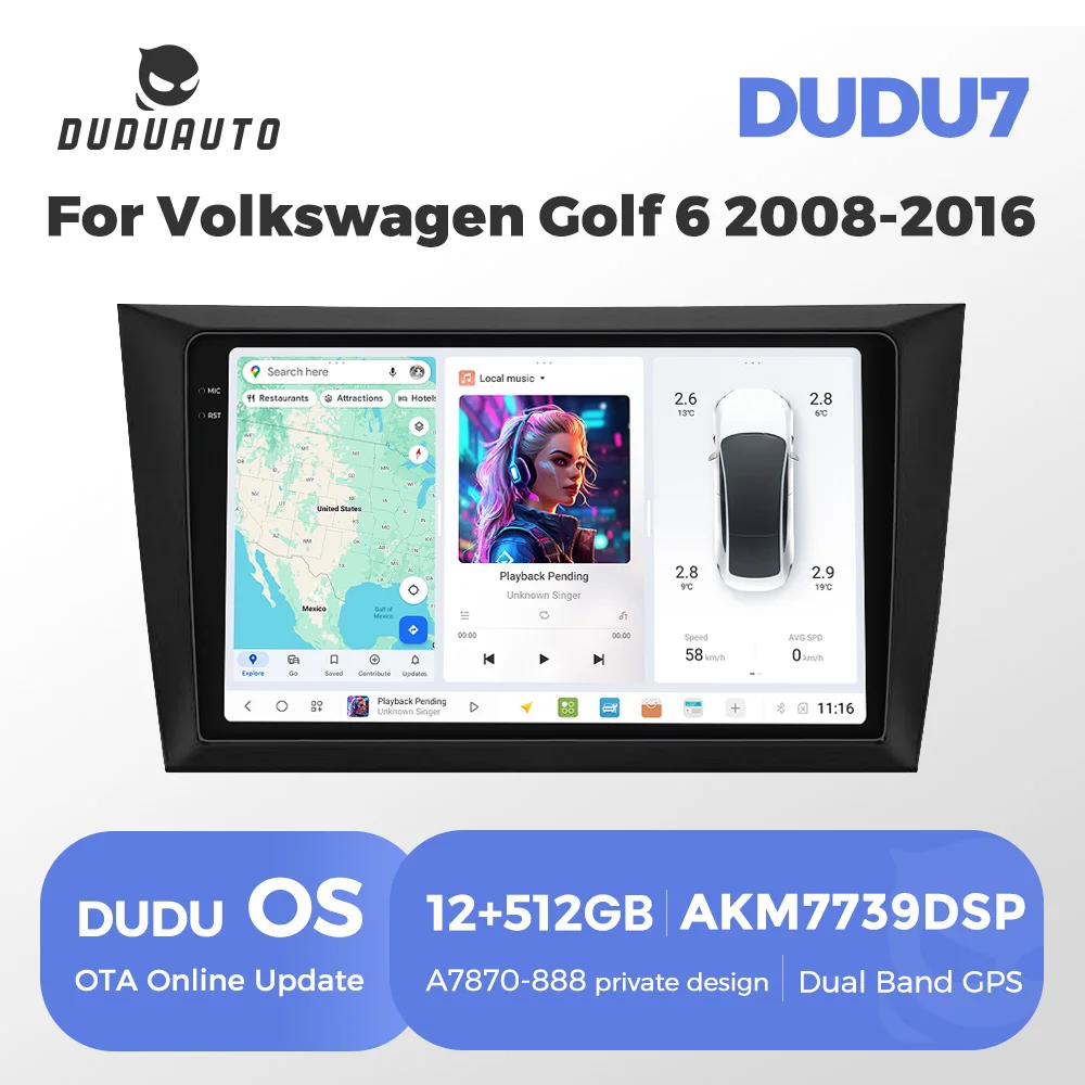Tienda UE DUDUAUTO DUDU7 A7870-888 2K pantalla táctil unidad host Carplay inalámbrica para Volkswagen Golf 6 2008-2016 Android AUTO Radio reproductor Multimedia navegación WIFI DSP estéreo BT 2 Din Radio Dual GPS DTS UE