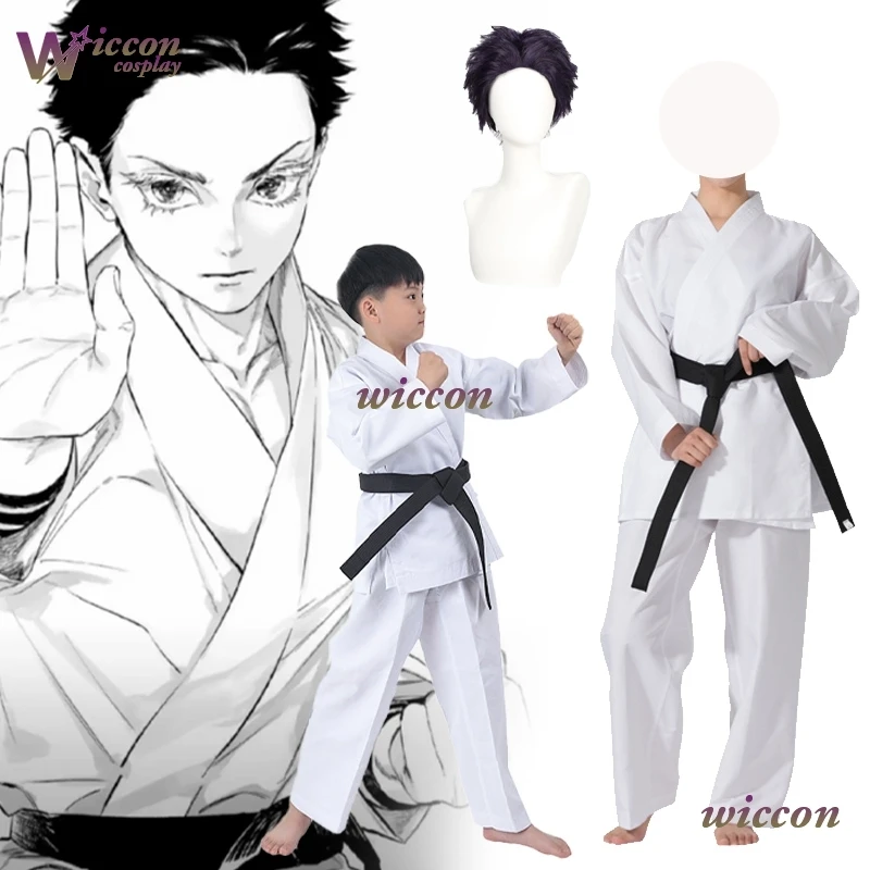 Traje de entrenamiento de Karate blanco humano, disfraz de Halloween Akaza Hakuji Soyama, peluca, uniformes de talla para adultos y niños, ropa de película de Anime