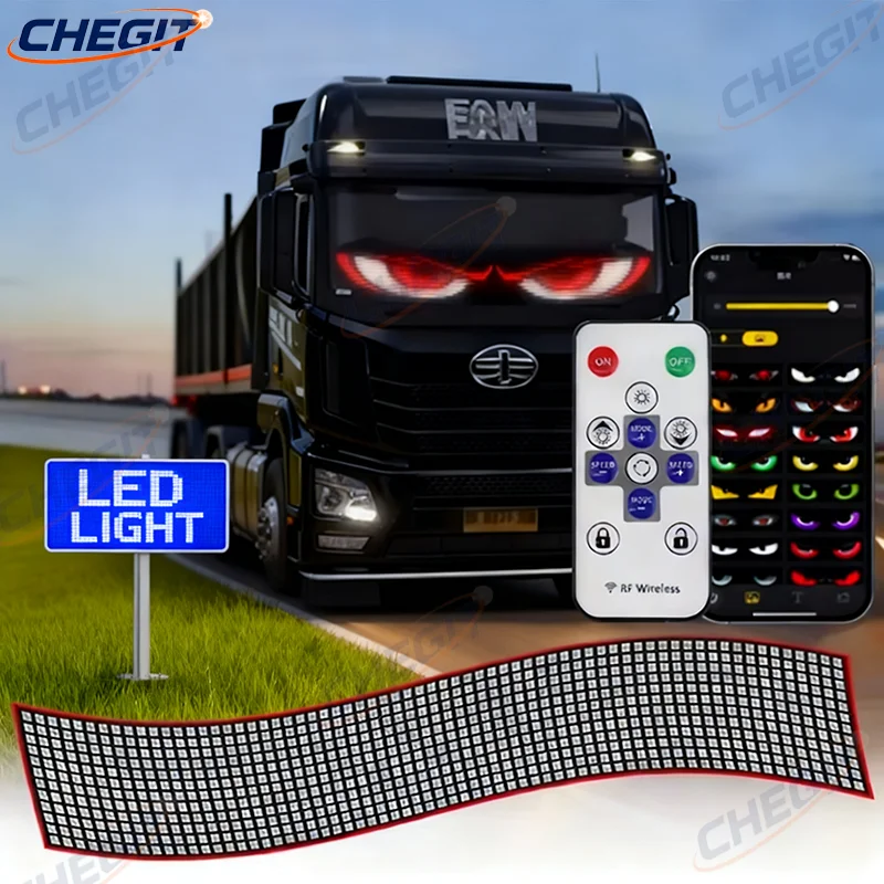 Señal LED Devil Eyes para camión, Control por aplicación, cartelera desplazable programable, pantalla publicitaria de texto personalizable para decoración de coche