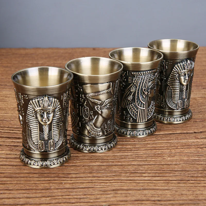I Piece vaso de chupito egipcio Vintage de Metal de bronce, copa de vino creativa, vaso personalizado, barra para beber, regalo para whisky, 40ml