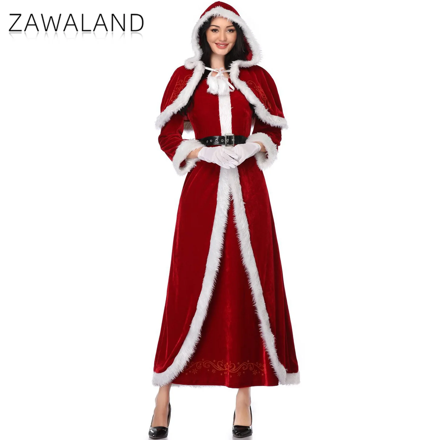 Vestido de Cosplay de Navidad de Color rojo para mujer, vestido de terciopelo de manga larga, disfraz de actuación de fiesta de Navidad, capa con capucha para escenario y Festival
