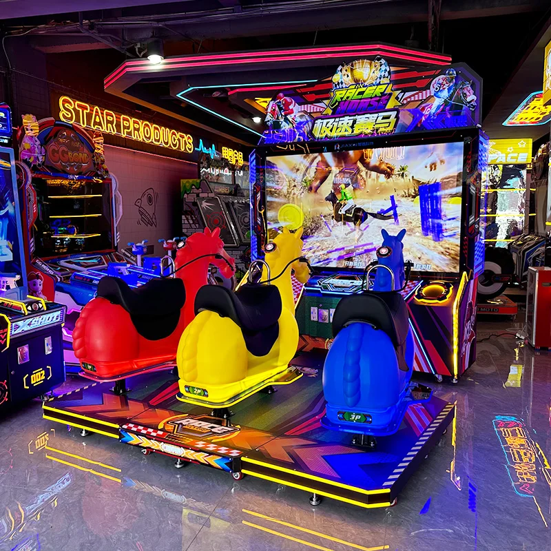 Machine de jeu d'arcade d'équitation de Simulation à pièces de monnaie Machine de jeu de course de chevaux électrique de sport de 3 joueurs