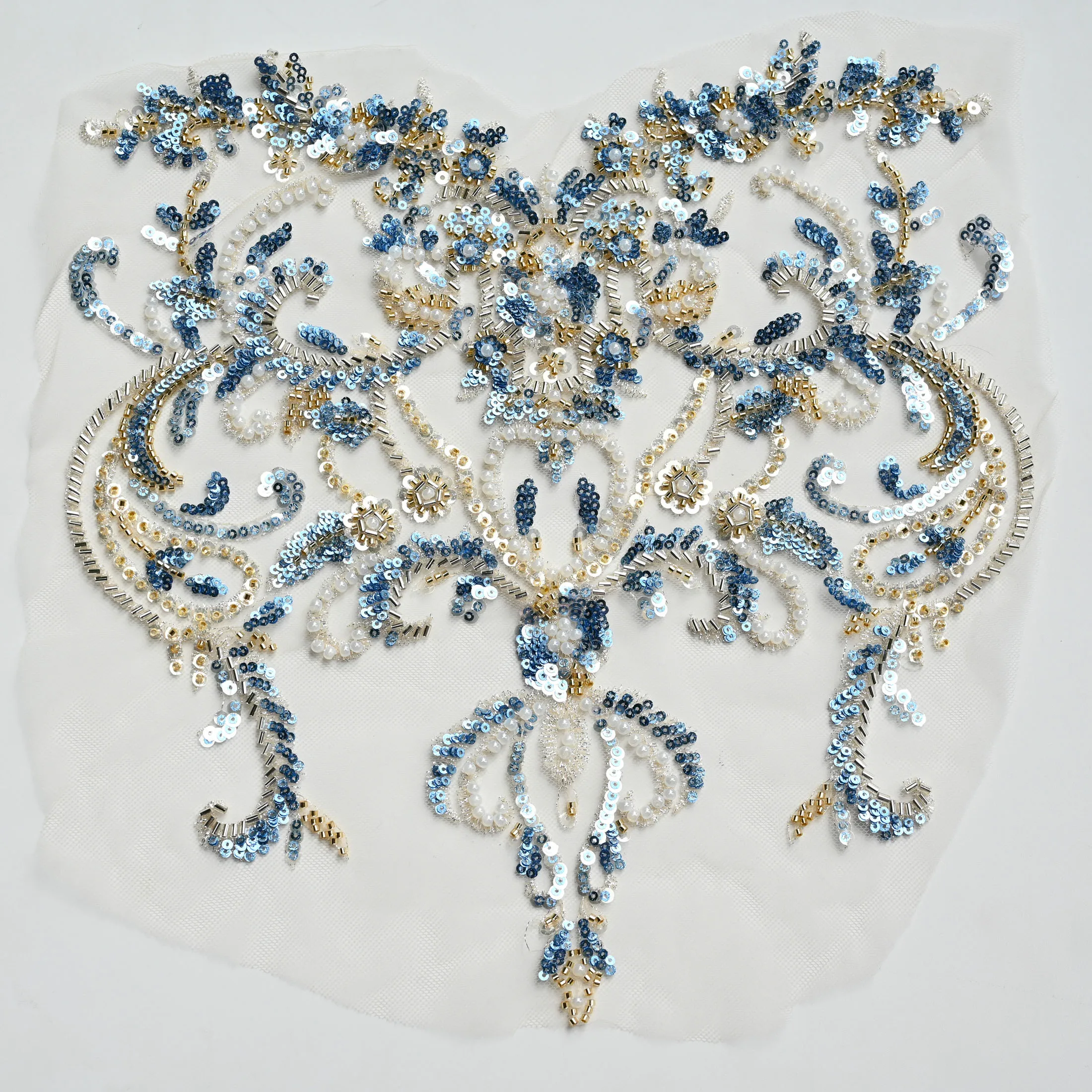 Appliques de dentelle florale brodées de strass de luxe pour robe de mariée, grandes patchs floraux brodés pour vêtements